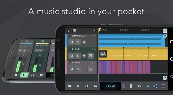 n-Track Studio(多轨录音软件)手机版中文免费版是款功能齐全专业的便携式音乐制作应用软件,它几乎可以录制无限数量的音频、MIDI 和鼓点音轨,并在播放过程中混合并添加效果,比如吉他、放大器、 VocalTune、混响等,另外它还有着专业音效与音频处理、一键分轨导出并提供最为强大的剪接与编修能力且程序容易使用,适合小型录音棚和音乐爱好者使用。