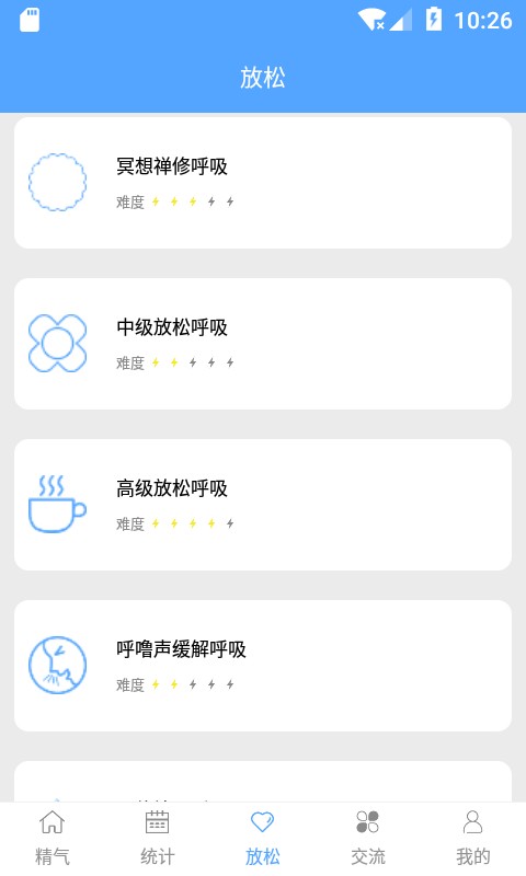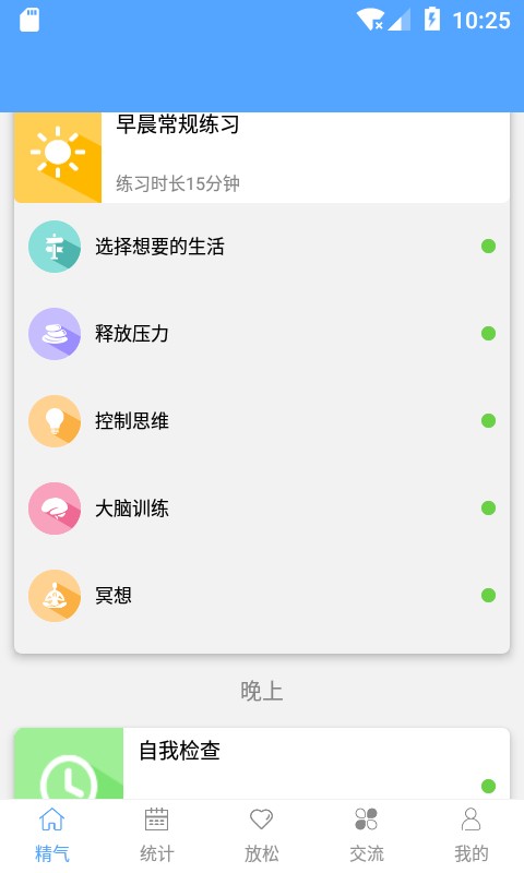 精气app戒色助手最新版可以帮助用户修身养性,这里有多种训练方式,包括了冥想、大脑训练、放松等,用户可以选择一种练习方式开始训练,帮助用户成功戒色,养成各种好习惯,让生活更健康。