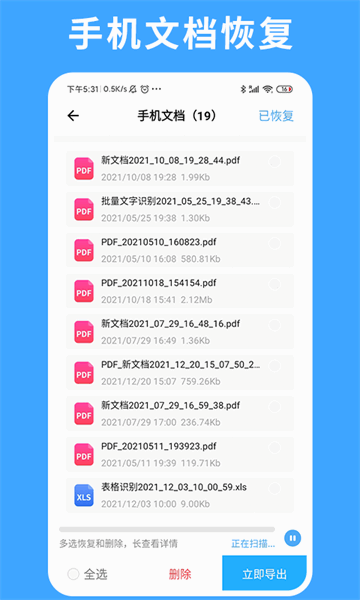 world、Excel、ppt、pdf、txt等各类文档恢复。
