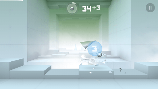 3.游戏的基础玩法很简单,难点在于不断变化的游戏场景以及各种充满挑战力的障碍,这是开发者赋予游戏最大的乐趣所在。游戏的视角是自动推进的,玩家不能控制前行的速度。因此,随着游戏进度提升,玩家会感觉到越来越艰险,自动出现的玻璃门,呈 DNA 形状的玻璃旋转体,玻璃扇叶等等。而且他们带来的视觉冲击力不亚于时下流行的 3D 电影的效果。