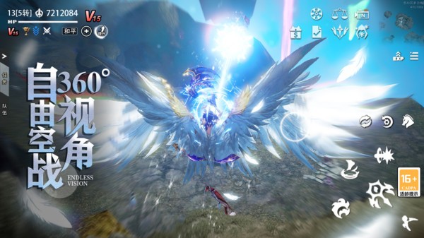 游戏提供了色彩缤纷的华丽羽翼和时装,自由搭配组合,成为独具个性的时尚达人。巨龙、异兽等炫酷霸气的坐骑,带你冲上云霄。360°全景自由飞行,俯瞰大陆山海风光。独创空对地突袭打击玩法,更可以空对空爆发激战,电光火石的炫丽技能在万里长空迸发,让整个世界都看到你绝尘的英姿。