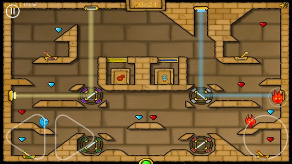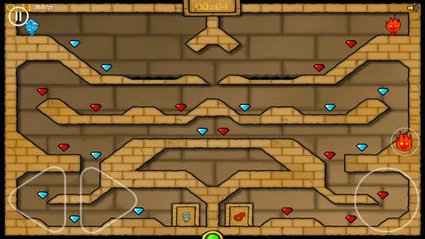 游戏里有各种陷阱和障碍需要躲避,还要收集宝石来解锁更多场景,这种设定挺吸引人的。火男孩和水女孩的搭配也很有趣,两人合作才能通关,这种互动让人感觉很默契。虽然游戏看起来简单,但其实有很多策略可以玩,比如如何避开绿色粘液和合理利用瞬移功能。