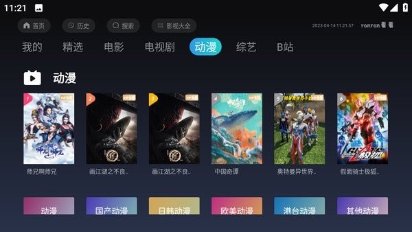 ranran看看电视直播app是一款即支持盒子,也支持手机上使用的免费影视软件,可以在线观看电影、电视剧、动漫和综艺,并且还有b站专区,可以看哔哩哔哩里面的视频内容,这是一般影视app里面没有的哦!