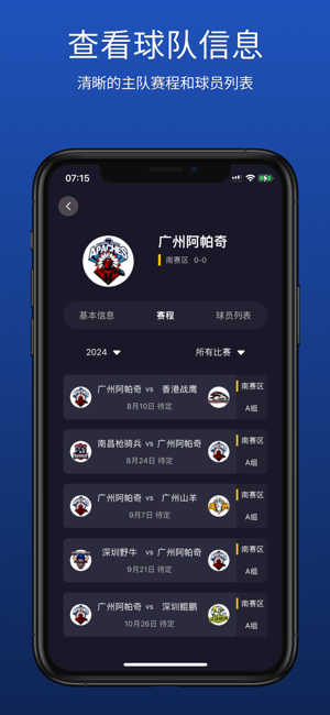可在App内对赛区和球队进行筛选,快速查看排名。
