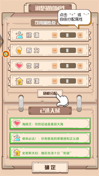 1.有很多天赋可以选择添加,不同的才能会给你带来不同的人生体验。
