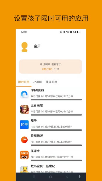 3.设置孩子限时可用的应用