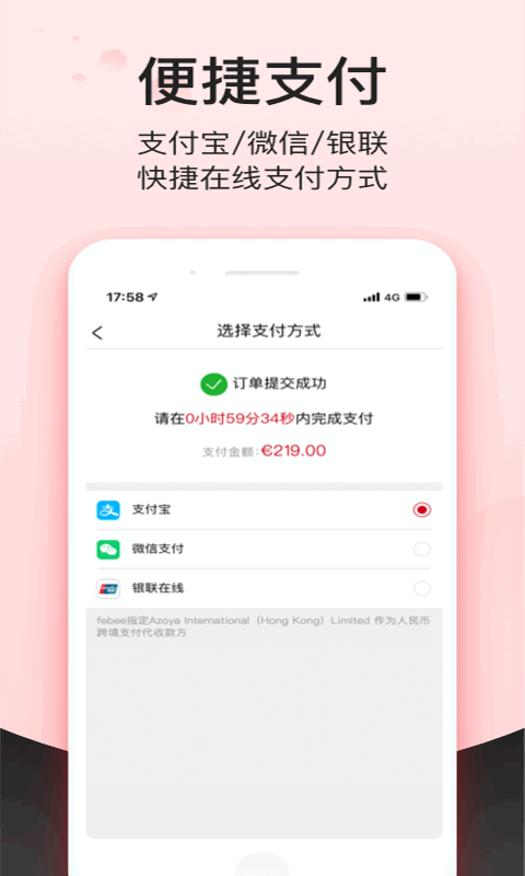 febee商城官方版是提供海外购物的线上商城平台,网罗了大量的优质视频,品质保障,商品详情一目了然,价格透明,随时查找,一键查看,自由选购,轻松支付下单,快速送达,订单详情状态一手掌握,售后无忧,好用又方便!