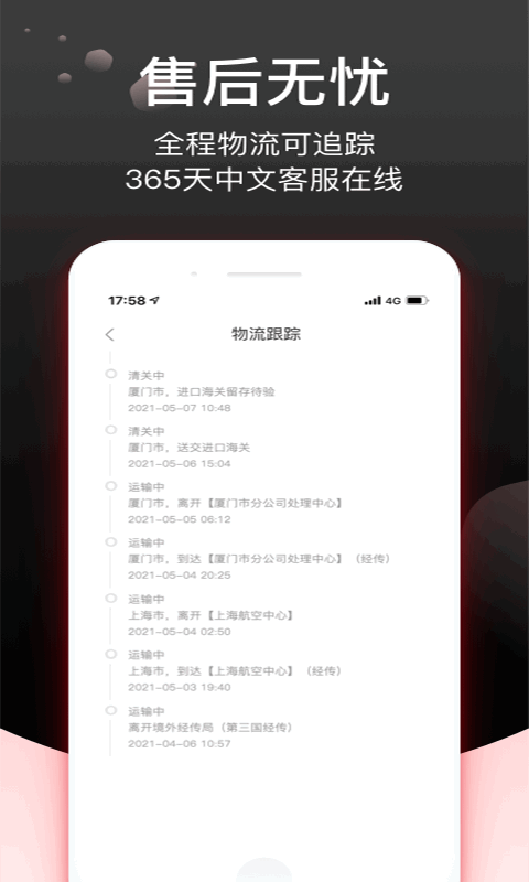 -- 运输进度,自己的商品实际运输进度情况等,都会在应用内进行智能的追踪处理
