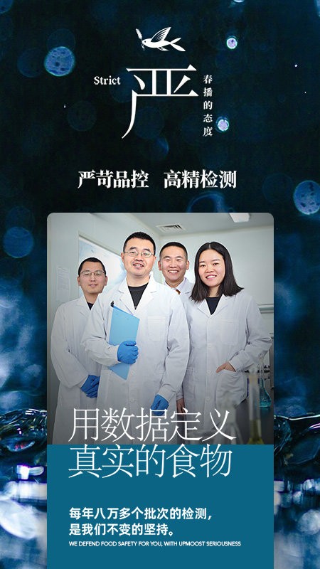春播商品检测标志,点击可查看专属检测报告。其中春播best,春播品控分别以国家有机、国家食品安全标准为基础,检测项目更多,频率更高。