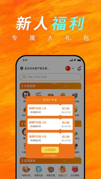 ・超多品牌外卖,如肯德基,麦当劳,必胜客,星巴克宅急送,私房菜等多种美食送餐上门~网罗周边各类美食,中餐、西餐、柬餐、火锅、烧烤、烘焙、汉堡、早餐、下午茶、夜宵、甜点、甜品、鲜花、果蔬、生鲜、寿司、咖啡、中国超市购物……便捷生活,一手掌握。