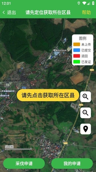 7.如有手机信号,点击(核验区域)按钮进行采伐区域核验(核验是否公益林、是否天然林、是否保护地、是否和已发证的重叠),如有重叠则不提交申请。
