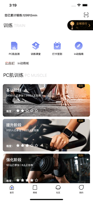 in动软件是提供运动健身训练的应用app,带来完善的训练计划,支持pc肌自测、训练课堂、打卡签到、in动指南服务,还打造线上社区交流功能,可以进行pc肌锻炼、商品测评、提供建议意见,训练记录历史随时查看,及时统计了解!