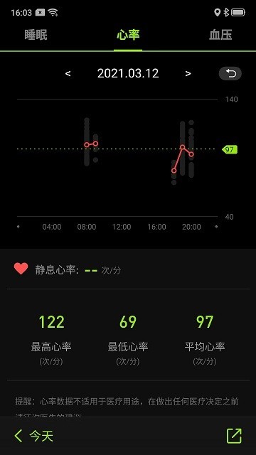 4、记录每天的心率数据和心率区间,统计高心率、低心率、平均心率和周、月平均心率趋势。