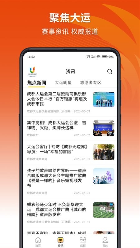 大运通作为第31届世界大学生夏季运动会的官方App,为成都大运会运动员、媒体记者等涉赛人员提供赛事相关服务。