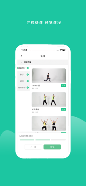 2、不同类型的课程分类快速选择呢,拥有体能、体考、篮球、无数、搏击、韵律操等课程自由选择。