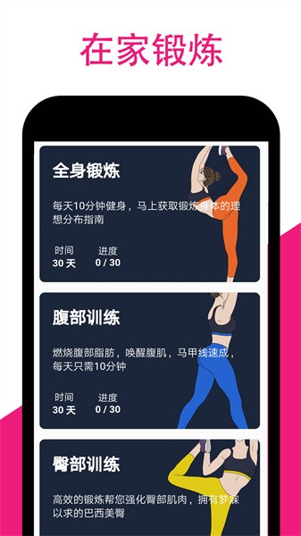 《女性健身 - 女性锻炼减肥App》是专门针对女性设计的健身App,在家锻炼,无需器械,随时开始!
