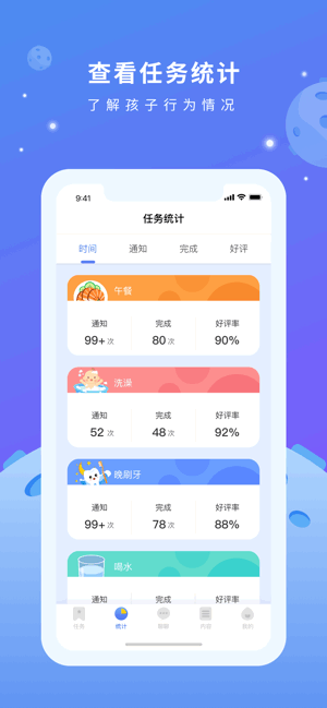 预设早起早睡、学习娱乐等习惯任务,远程发送任务,查看孩子的任务完成情况,培养孩子的良好习惯。
