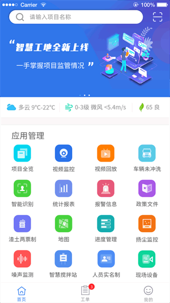 盐城智慧工地监是运用云计算、物联网、大数据、 BIM 等信息技术创新建筑工程施工模式、工程监管和项目管理模式的新技术。 APP 端能够远程视频监控、扬尘监测、特种设备监控、人员管理等功能。
