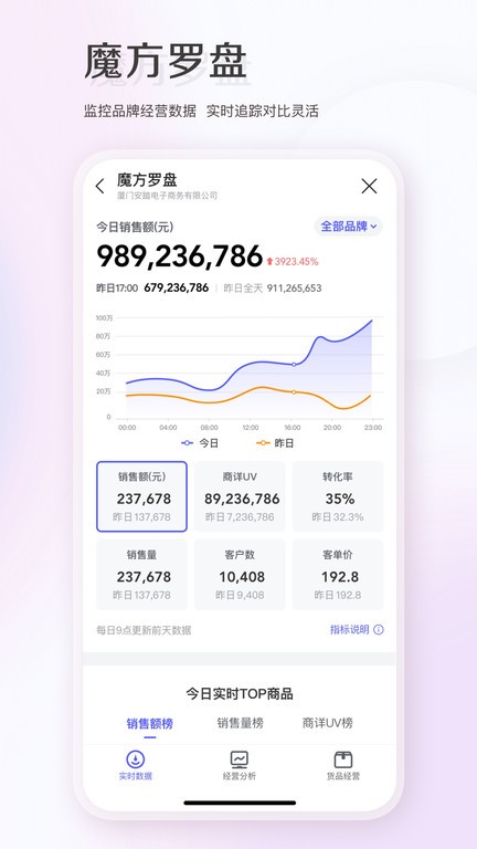 3、魔方罗盘:实时监控品牌经营数据,支持多维度查看商品数据。