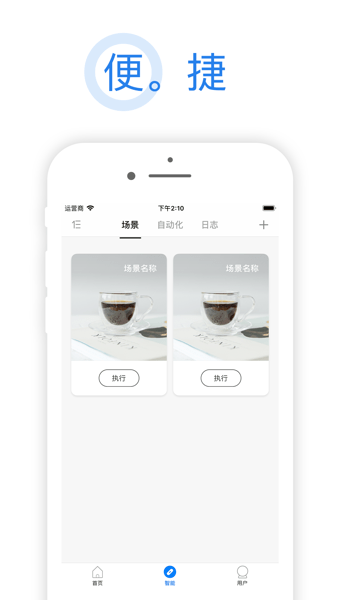 -- 用户可以自由切换智能家居的智能场景,选择任意一个场景就能让智能家居自动运行;