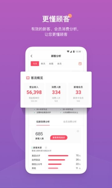 为老板提供全方位的数据分析,可以随时随地的掌握生意状态,让老板更了解生意更懂顾客。