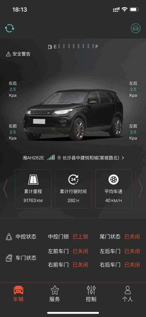 -- 累积行驶里程,平均车速,蓄电池电量,四轮胎压、车辆保养、数据