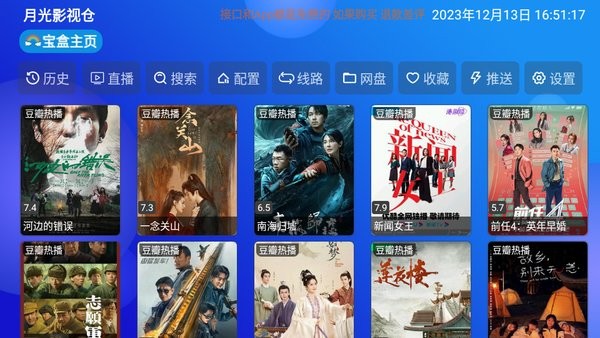 月光影视仓电视盒子版是提供电视影视播放的应用软件,同步各大主流视频网站资源,同步央视、卫视直播节目,内容丰富齐全,分类清晰,及时更新,多线路播放源选择,灵活切换,稳定流畅,高清播放,自由选集,在线调节,方便简单!
