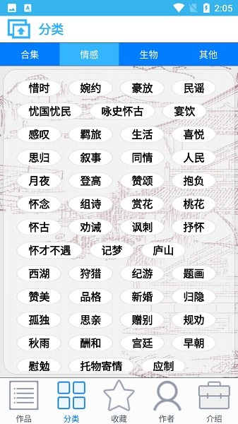 收录了中国秦楚汉、唐诗宋词,经典古诗词等一系列作品。