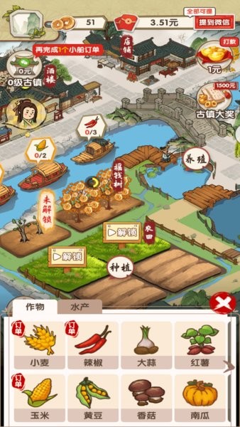无忧古镇app正版赚钱版是一款以古镇为主题的模拟经营游戏。玩家扮演镇长的角色,通过完成各种任务来发展自己的古镇。游戏中可以进行农场耕作、水产养殖、果园收成等活动,还能经营酒楼和店铺,体验悠闲的古镇生活。