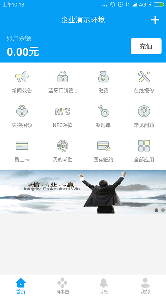 完美企业app最新版是一个专为企业员工设计的移动办公神器,功能超级强大,几乎涵盖了工作中的方方面面。比如新闻公告、缴费、在线报修这些日常事务都能在手机上搞定,特别方便!最让我觉得牛的是它的“钥匙串”功能,用手机就能开门,科技感十足。还有NFC领款,虽然我没有支持这个功能的手机,但听说很方便。考勤查询、会议提醒也都很实用,再也不用担心错过重要会议了。