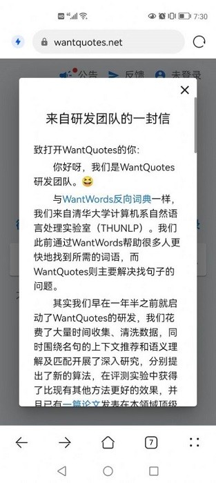据意查句(WantQuotes)是一个利用人工智能来查词找词的工具,只要输入白话文,就可以为你搜索意思相同或类似的古诗词、成语、歇后语等类型的句子!