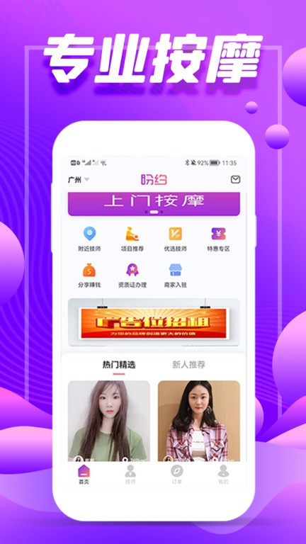 【盼约到家】是一家提供24小时上门推拿的专业平台,本平台可体验上门推拿,上门按摩,上门精油SPA等服务。本平台提供专业,快捷,正规,安全的24小时上门推拿按摩服务。平台担保,交易无忧。海量技师资源经实名认证,资质认证,智能人脸识别。您可查看技师详情,根据(距离,头像,状态,评价)自由选择您意向技师为您服务。本平台承诺:不满意可退款。