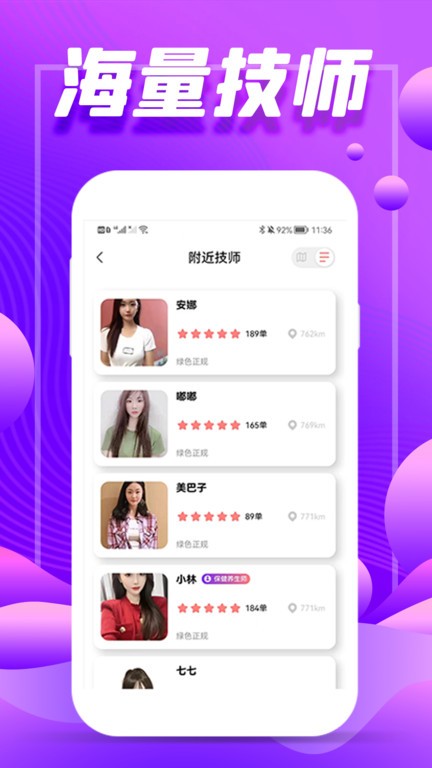 快速服务,快速为你定位你所需要的服务,都能在里面选择了你想要的技师。