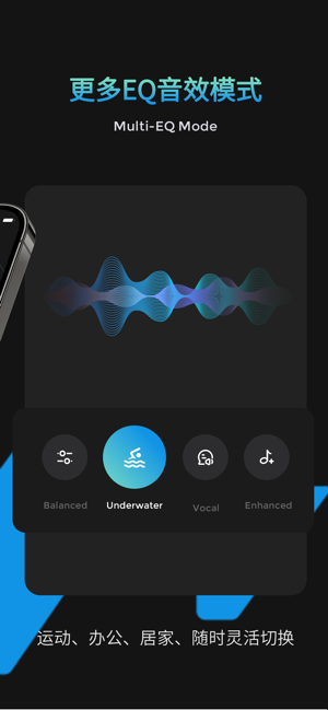 内置了等化器,使用户可以根据不同的音频类型来调整音量,并优化音频体验:低音、中音和高音调节等功能。