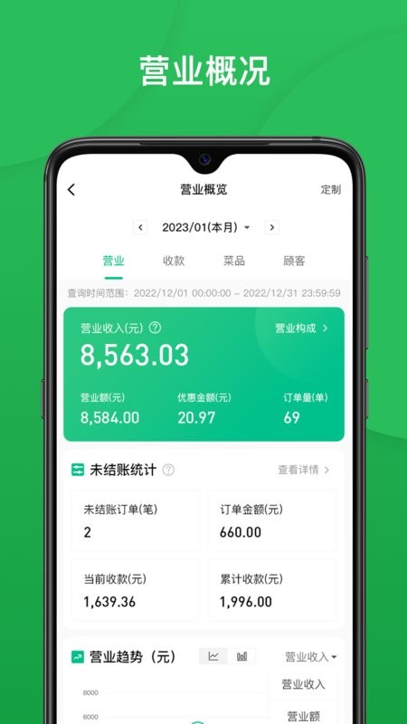 【统计分析】:营业报表、会员报表、员工报表、商品报表、营销报表,多维度统计分析,为经营决策提供数据支持。