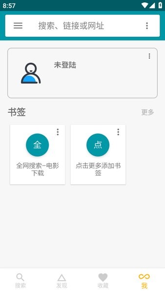 书签添加,自带了全网搜索书签,这个可以搜全网的影视,同时还可以手动添加。