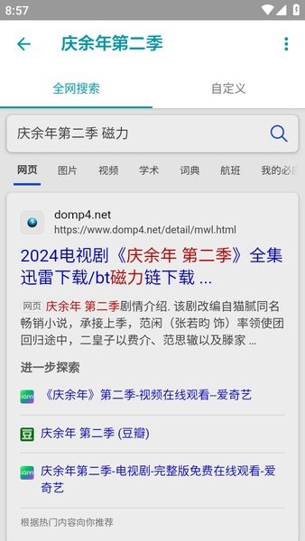 神奇磁力搜索神器可以用于搜索磁力连接、bt种子文件等,并且还可以在线播放,搜索出来的视频结果支持点击在线观看;如果是磁力连接就需要使用第三方下载工具进行下载,尤其找影视资源很实用,这样可以免费看剧。