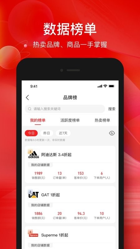 专业的数据分析软件,为用户提供热门商品、品牌、收益等多维度数据信息,提供一站式订单查询服务,帮助用户更好地研究商品品类,提供实时数据,辅助用户更好地卖货。