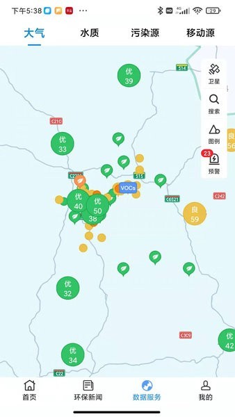 3、环境质量,以地图的方式展示空气、水、污染源等信息