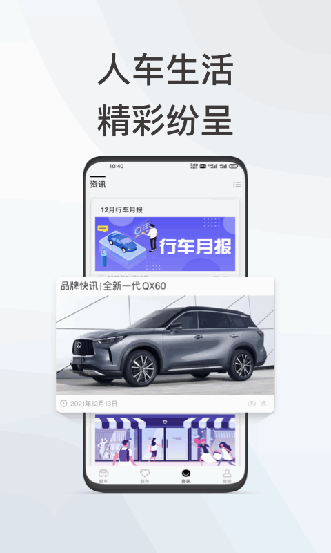 英菲智联APP是东风英菲尼迪汽车有限公司为旗下智能网联汽车推出的车主服务软件,提供前所未有的智能化科技服务和个性化出行体验,您可以随时掌握车辆状况,并享受优质的车载娱乐服务。(APP目前仅适用于英菲尼迪2022款QX60车型)
