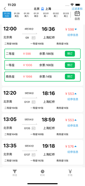 -- 提供全国高铁、动车与普通列车的查询及预订选座