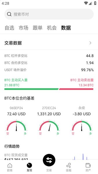 ok交易平台官网app下载为广大玩数字货币的用户提供了便捷的交易方式,软件可以随时随地进行货币的买卖,安全又保障。同时,软件还能让大家及时了解币圈动态和行情,尤其是把握市场,才能更好的进行交易,避免被割韭菜。