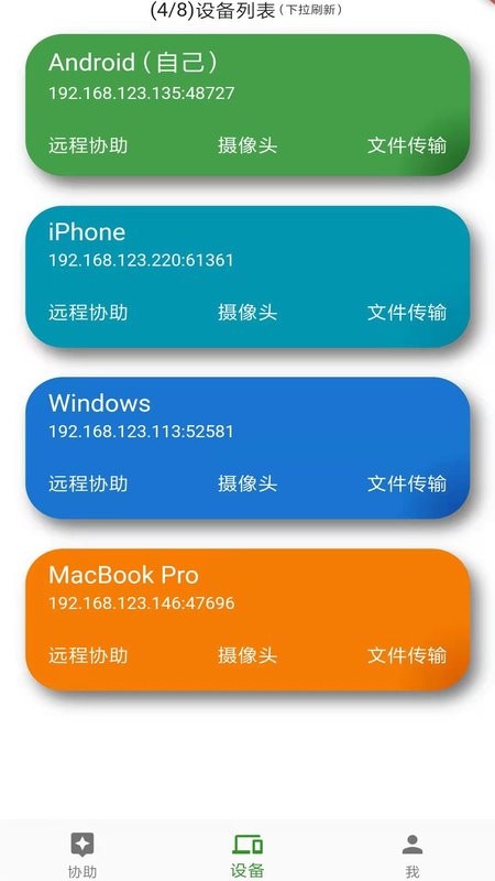 newdesk远程控制软件是提供远程文件传输、远程摄像头监控、远程协助操作的应用工具,支持手机、苹果、电脑端远程控制,快速识别设备,还可以自由修改编码模式和画质,自定义游戏键盘,操作简单方便,相互控制,不用注册账号也可以使用!