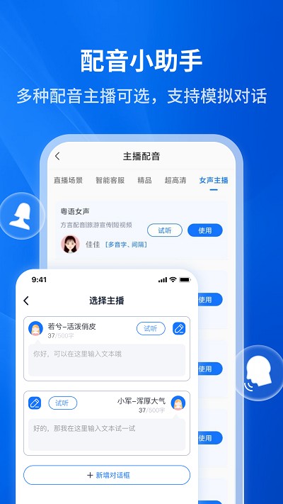-- 可对一段话使用多种配音音效,形成对话模式;