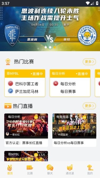 2.看直播:及时全面的赛事预告,足球、篮球、电竞等体育综合赛事的直播和点播;