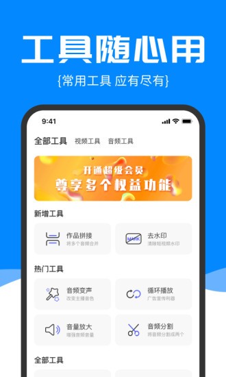 任意文件可一键切割,多个音频文件可直接合并,还可变声、添加背景音乐