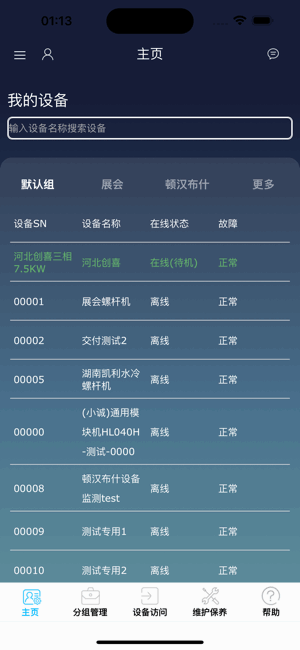 支持分组管理、设备访问、维护保养、帮助等服务