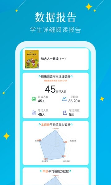 这个蜜蜂阅读教师端app真的很实用!老师可以轻松布置作业、跟踪学生阅读进度,还能和家长沟通。功能挺多的,比如数据报告能详细看到每个学生的阅读情况,随时随地发布语文作业也特别方便。最棒的是有多维度的数据分析,包括阅读字数、本数、测评分数等等,这样老师可以根据这些信息制定更有针对性的教学方案。