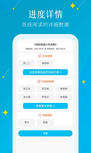 阅读进度统计,极速浏览学生的学习和阅读情况。