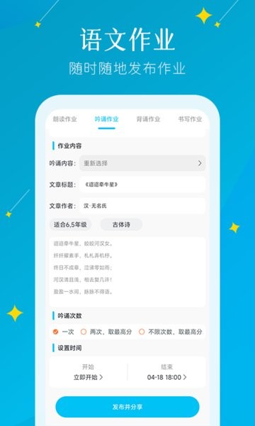 2.教师通过蜜蜂阅读APP完成朗读作业、吟诵作业、背诵作业,实时掌握学生作业完成情况,点评和互动,极大的提高了作业检查速度和便捷。
